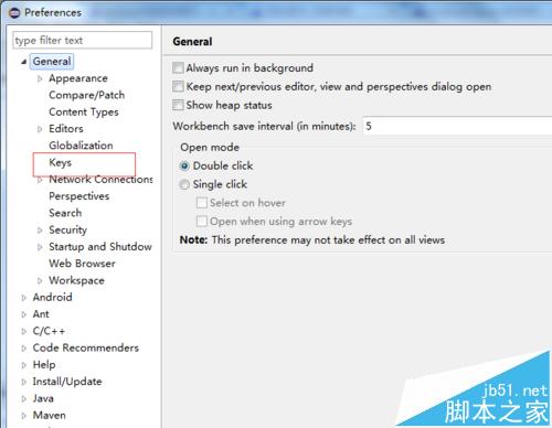 4、進入到了general的選項中之后,進行選擇“keys”的選項。