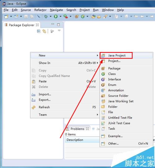 Package Explorer 右單擊彈出快捷菜單new——java project。