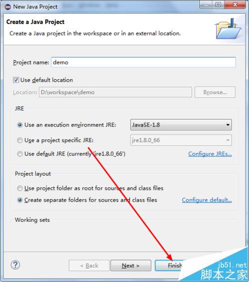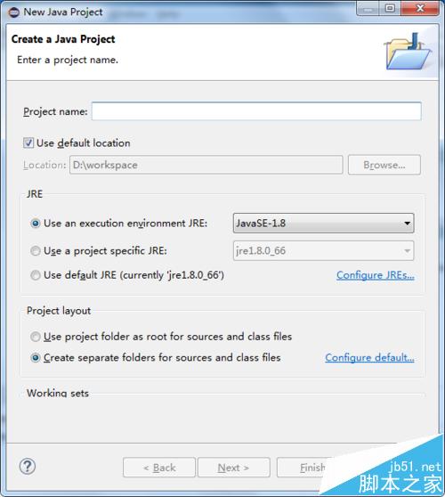 4、彈出new java project對話窗口,輸入name 單擊finish