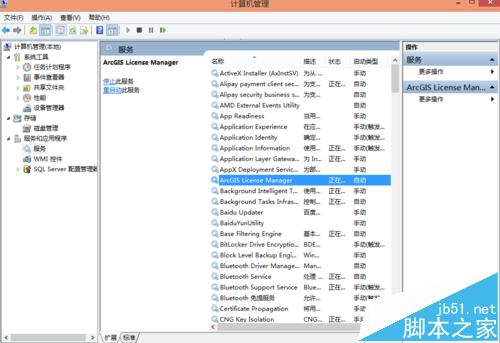 4、在服務中找到ArcGIS License Manager選項,點擊啟動或者重啟動,如圖。