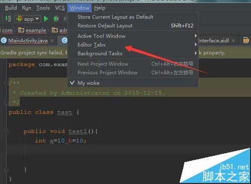 3、進(jìn)行點(diǎn)擊Android studio的菜單中的“window”的選項(xiàng)菜單。