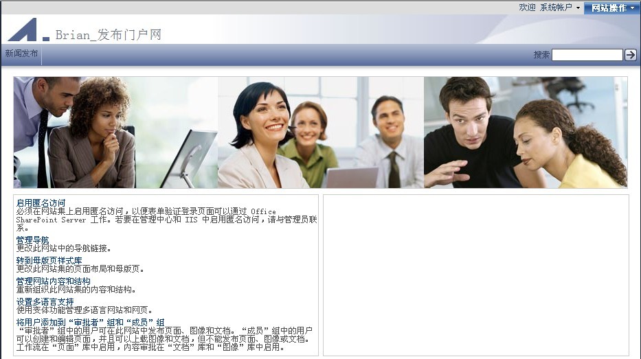 小結:通過SharePoint創建網站就簡單的介紹到這里,通過SharePoint可以很容易的創建自己的門戶網站。并且對網站的參數進行修改,希望能對新手有幫助。