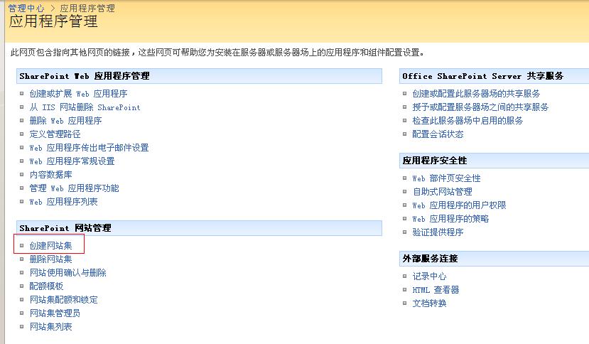 來到熟悉的應用程序管理界面,在SharePoint 網站管理中,我們就可以創建網站: