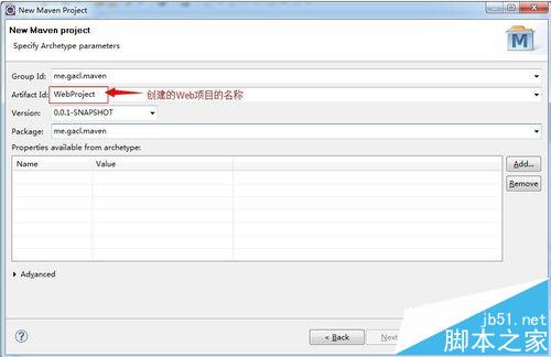5、Group ID一般寫大項目名稱。Artifact ID是子項目名稱。例如Spring的web包,Group ID:org.springframework,artifactId:spring-web。Package是默認給你建一個包,不寫也可以。如下圖所示:
