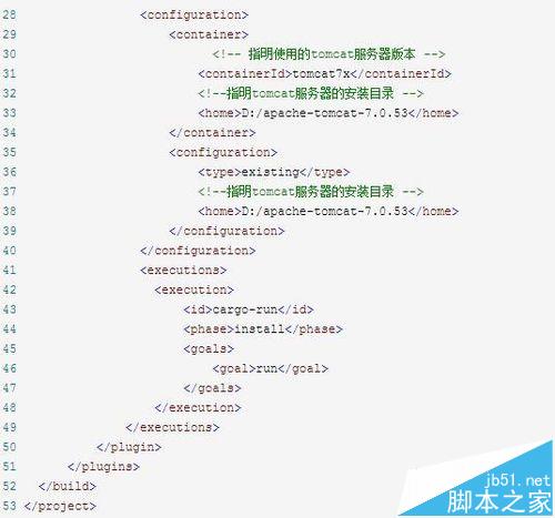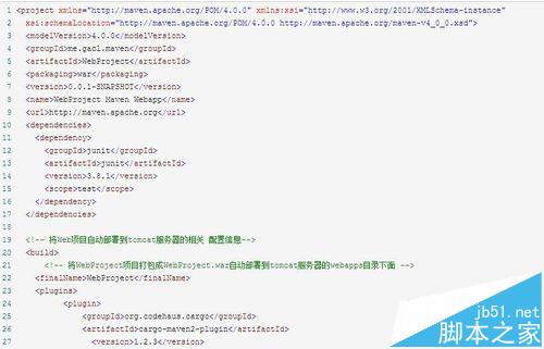 1、在pom.xml文件中配置tomcat服務器,配置web項目的pom.xml文件,配置如下圖所示: