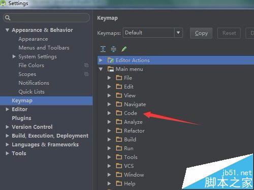 4、進行點擊了main menu的選項中之后,就會進行張開了,進行點擊選中的code選項
