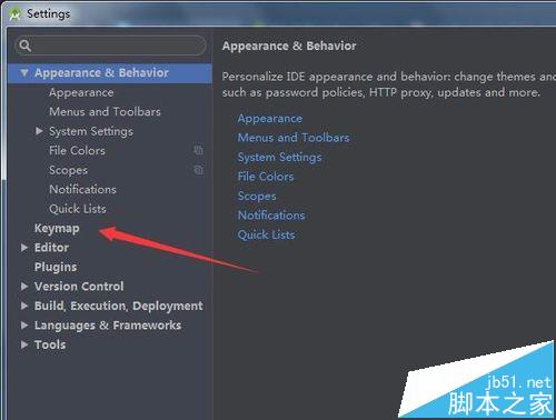 2、然后就進入到了setting的選項中,進行點擊列表中的keymap的選項。