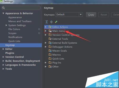 3、那么就進入到了keymap的界面中,進行選擇main menu的選項。
