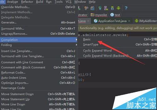2、然后進(jìn)行點(diǎn)擊Android studio的菜單中的“code”的選項(xiàng)。