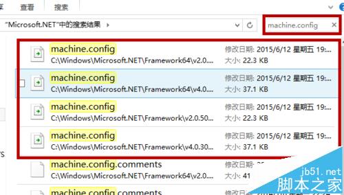 4、找到C:/Windows/Microsoft.NET.目錄,在該目錄下搜索"machine.config"文件。根據你的系統不同,machine.config文件的數量也不同。我有4個,分別在下面四個目錄下