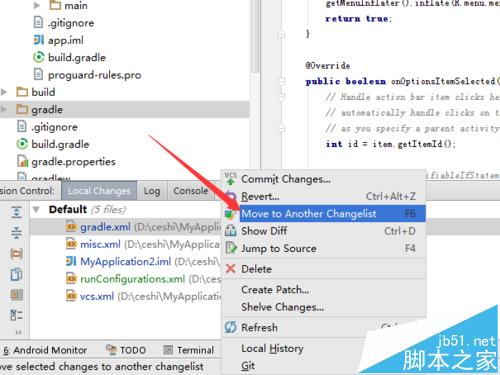 4、進(jìn)行右鍵已選中的文件,彈出的下拉的菜單中進(jìn)行點(diǎn)擊“Move to another changelist”的選項(xiàng)。