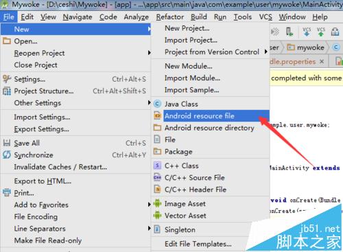 4、這樣就會彈出了一個下一級的菜單中,進行選擇菜單中的“Android resource file”的選項。