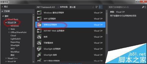 3、點擊模版中visual c#選項--------點擊控制臺應用程序