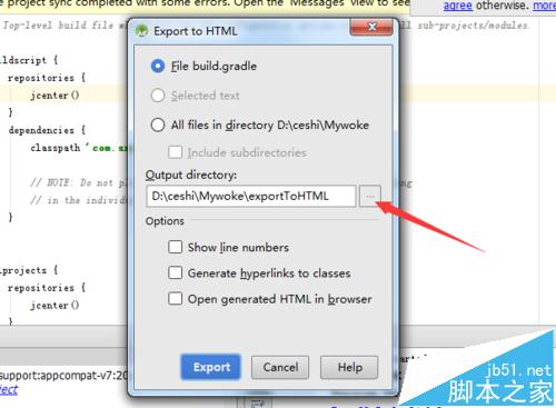 4、彈出了一個export to html的選項框中,可以在output dirextory中進行選中需要把文件導出路徑進行選擇,然后點擊“export”的選項。