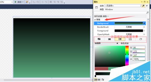 3、我們要更換的背景簡單的就是VS2015系統自帶的背景圖片。在視圖——屬性窗口中調圖窗體程序的屬性,在屬性的畫筆欄中可以更改窗體程序的背景。