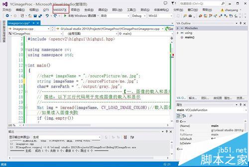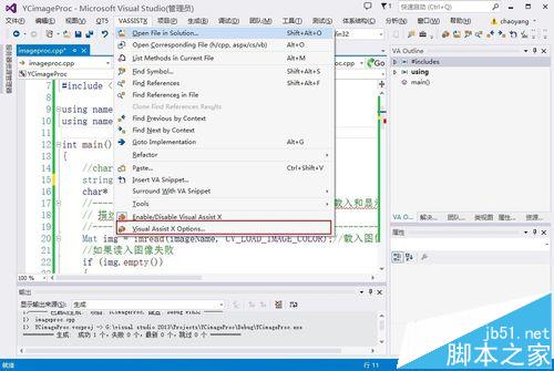 1、打開VS2013,在菜單欄中找到“VASSISTX”助手的插件工具,如下圖所示,選擇此選項