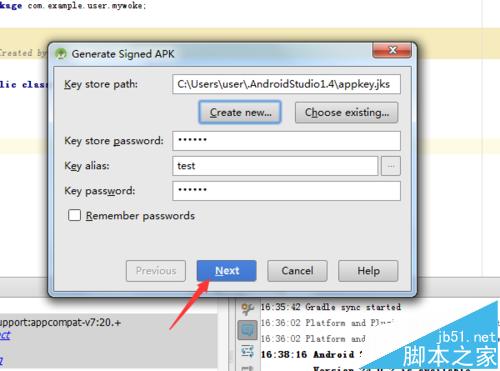 2、進(jìn)入到generate signed apk中界面框中,因第一次對(duì)apk的簽名,就需要先創(chuàng)建簽名文件鑰匙,點(diǎn)擊”create new“的按鈕。