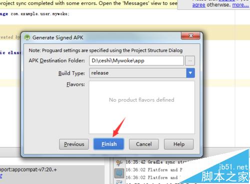 6、進(jìn)入到這個(gè)界面中選擇apk生成保存的位置,然后在build type中選擇release的選項(xiàng),然后點(diǎn)擊“Finish”的選項(xiàng),這樣就生成到apk的保存路徑中。