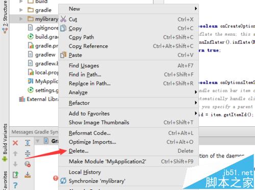 6、而Android studio的項目已添加的模塊需要手動進行刪除,找到這個模塊的文件,進行右鍵》》delete。
