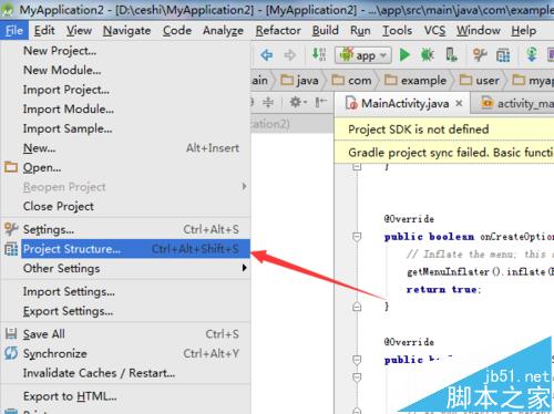 2、在彈出的下拉的菜單中,可以直接選中“project structure”的選項。