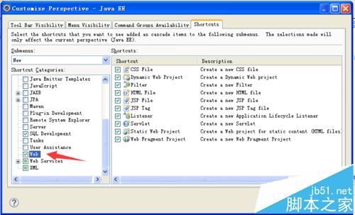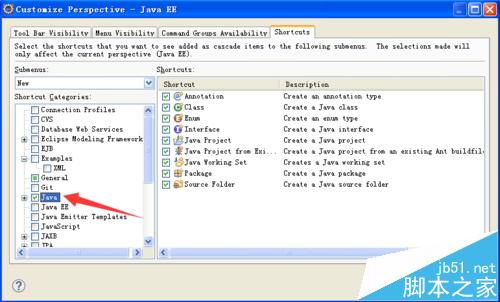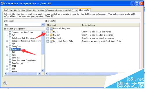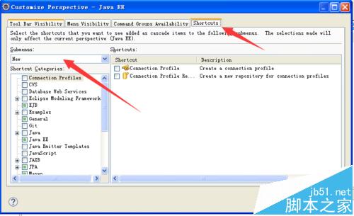 3、Eclipse為我們提供了new菜單的設置項,可以按照自己的喜好和常用工具來設置。如下圖: