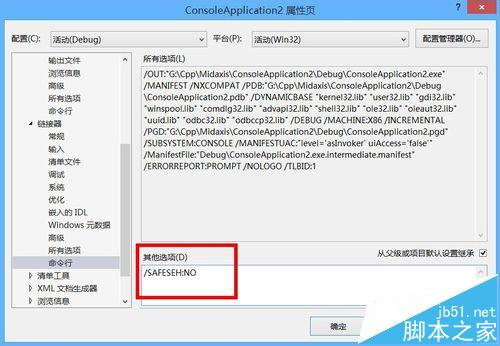 3、將 /SAFESEH:NO 復制到“其它選項(D)”框中,然后點擊應用