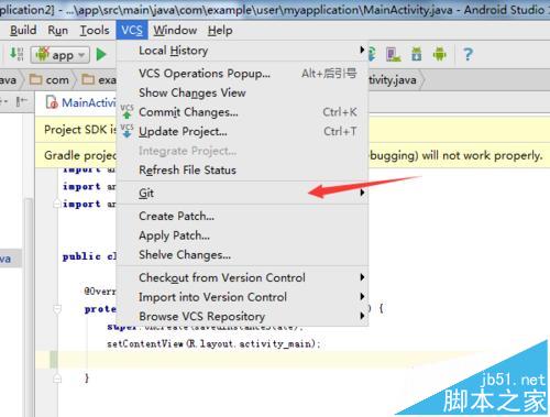 2、點擊完菜單中CVS的選項之后,就會彈出了一個下拉的菜單中,進行下拉的菜單中的git的選項。