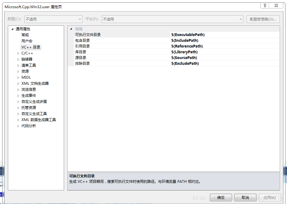 打開 C:/Users/Administrator/AppData/Local/Microsoft/MSBuild/v4.0目錄中的 Microsoft.Cpp.Win32.user.props 文件,里面內容一般如下