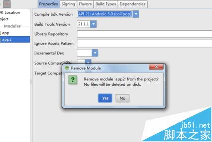3、彈出“Remove Module”的彈框,點擊Yes,然后ok