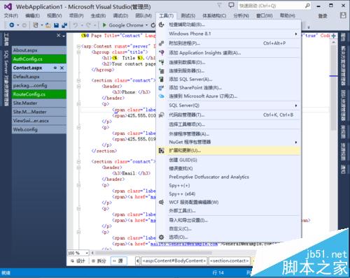 1、打開Visual Studio 2013,選擇菜單“工具”——“擴展和更新(U)”