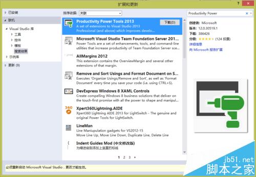 3、搜索結果如下圖,第一項就是“Productivity Power Tools 2013”,點擊它,選中項上會出現"下載按鈕",點擊下載,再次進入等待。