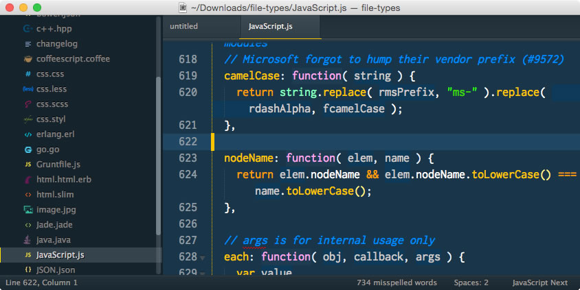 主題/配色我想合適的主題和配色是能夠潛在提高工程師效率的重要工具,雖然用白底黑字的記事本也能寫出穩固高效的代碼,但是為了我們的心情和眼睛,還是選幾款好的配色比較好。前端工程師對設計和美學更加敏銳,雖然不是設計師,但我們知道“什么是美的”。在Sublime Text中改變視覺效果有兩部分設置,分別是代碼高亮的“配色”以及編輯器本身的“主題”(包括了Tab欄、側邊欄以及Command窗口等)。順便插播一下,最新版本的Sublime Text 3能夠指定側邊欄的文件圖標了~