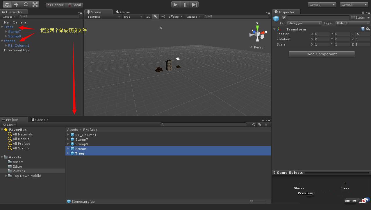 下面我們把 Trees(包括 Stamp7 與 Stamp9)以及 Stones 也做成預(yù)設(shè),如圖: