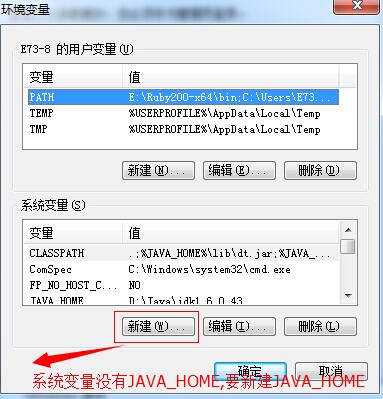 注:JAVA_HOME是指明JDK路徑,就是剛剛安裝時所選的路徑 D:/Java/jdk1.6.0_43 此路徑下包括lib,bin,jre等文件夾。