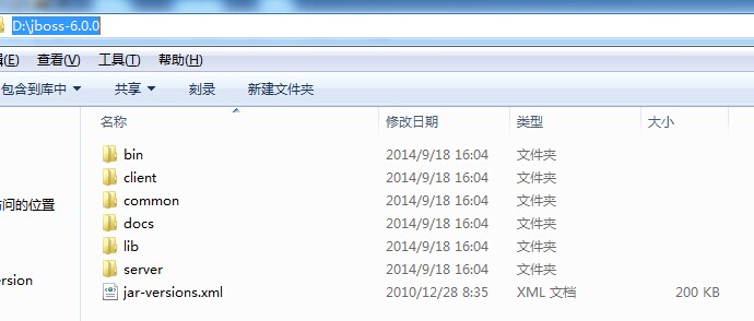 1. 下載最新的JBOSS解壓到D盤目錄下(或者其他盤),我的是6.0 如下所示: