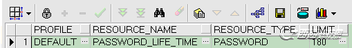 設定口令的有效時間(天數),一旦超過這一時間,必須重新設口令。缺省為180天(11g,10gUNLIMITED).