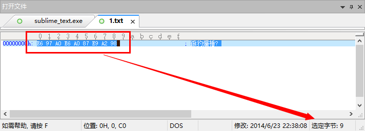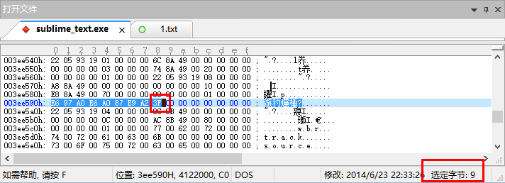 然后切換到 sublime_text.exe 下,同樣選中9個字節,然后黏貼即可。
