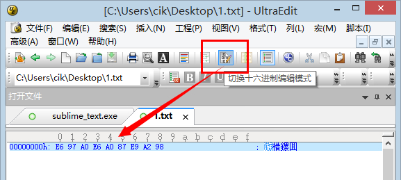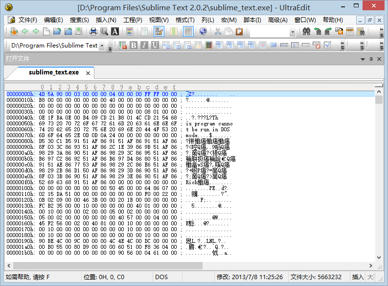用 UltraEdit 打開 sublime_text.exe 文件。