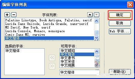 將字體樣式移到字體列表中后,按“確定”按鈕即可。