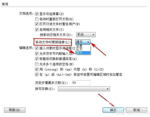 在“ 常規” 首選參數的“ 文檔選項” 部分,從“ 移動文件時更新鏈接” 彈出菜單中選擇一個選項,這個選擇的是“提示”,然后單擊“確定”按鈕完成設置。