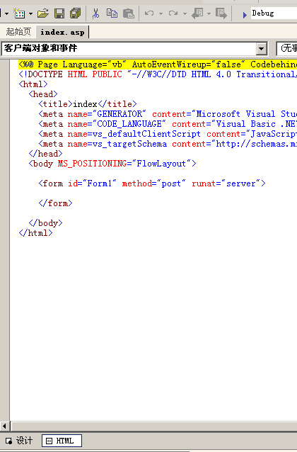 右鍵webproject1,添加新項(xiàng)---WEB窗體,名稱叫index.asp(注意名稱不是aspx,是asp)。然后可以看到index.asp的HTML處理編輯狀態(tài)。