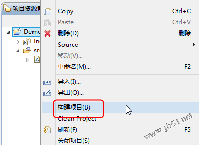 注意:這里才是最關鍵的,任何一個項目,第一次運行都必須對著項目名右鍵-->“構建項目”(英文版叫build project),會發現多出一些目錄和文件出來了,控制臺也會有一些信息,實際上這就是編譯,以后再修改了項目之后就無需再次構建了,只需直接點擊運行即可: