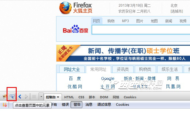 * 打開Firebug:按F12,或者點擊瀏覽器狀態欄右邊的