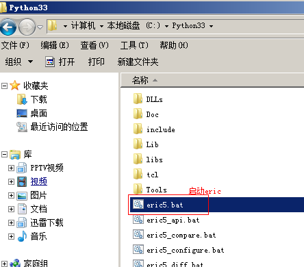 修改該文件夾的父文件夾eric5-5.4.0為eric5,復制到c盤,目錄結構達到如下效果。