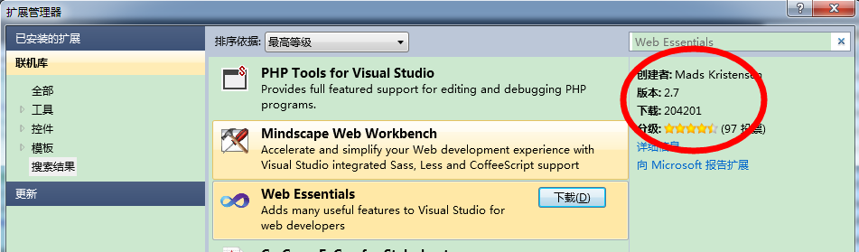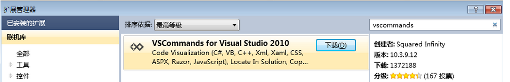 同樣這款工具可以通過VS的擴展管理器直接獲得: