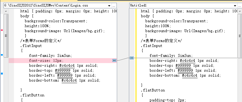 此工具可直接下載安裝進行關聯(lián)VS就可以了,下面是對比的效果,直接將兩邊不一樣的地方給我們關聯(lián)了,看上去很清晰。
