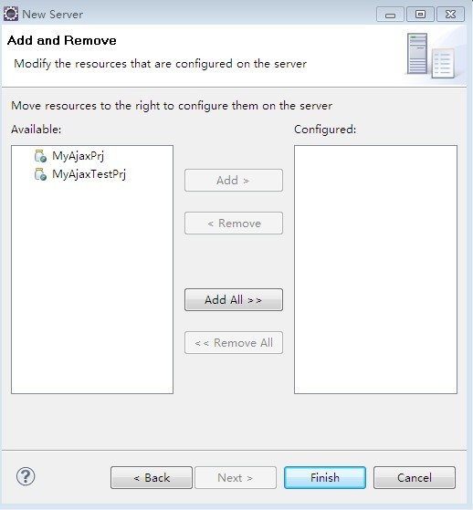 單擊 Next。系統提問您是否想要向服務器添加項目。選擇在之前的步驟中創建的那個項目,然后單擊 Add。