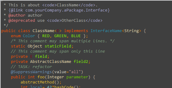 Method declarations(方法聲明): 255, 128, 64 橙色