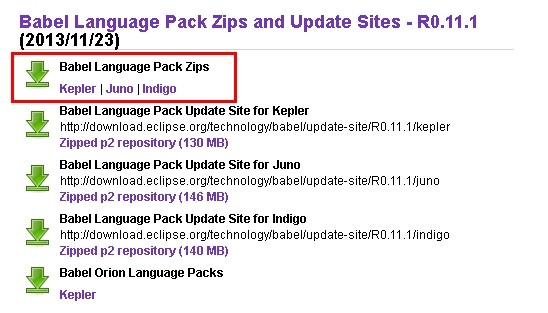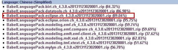 我們以Eclipse的中文漢化包插件為例,先到官方提供的漢化包地址下載一個:http://www.eclipse.org/babel/downloads.php ,注意選好自己的Eclipse版本:
