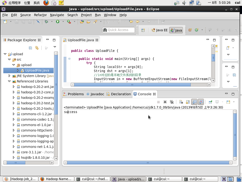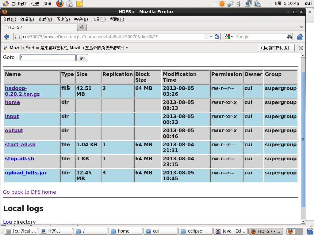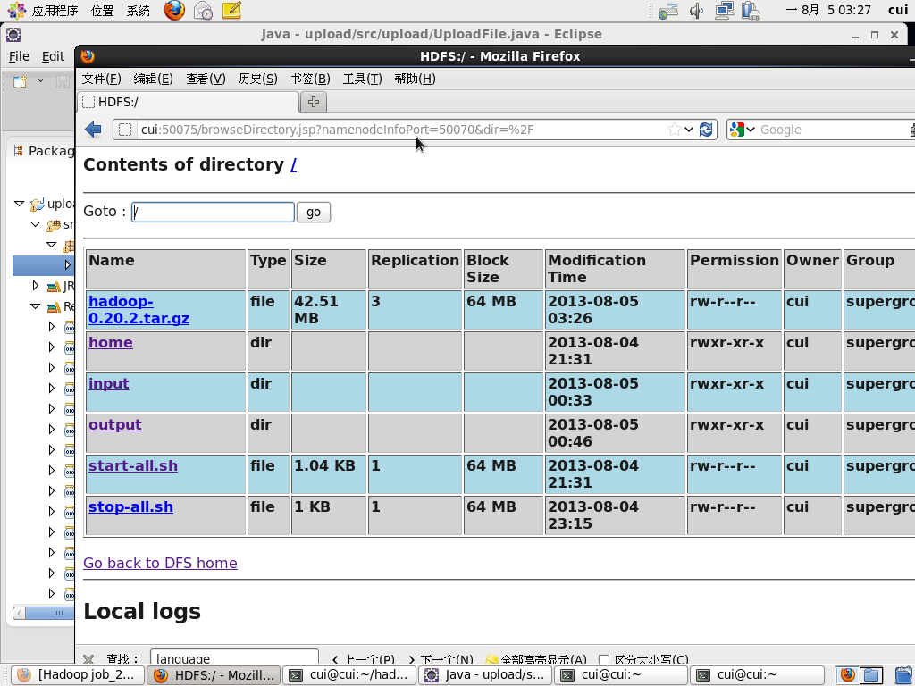 在hadoop文件系統中已經看到了hadoop-0.20.2.tar.gz了。